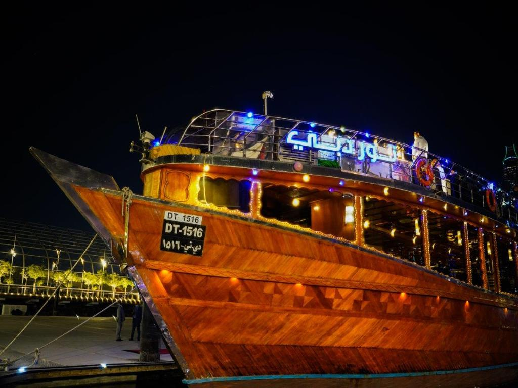 Dubai Marina Harbor, amidst a myriad of stunning skyscrapers and indulge in a decadent dinner buffet aboard our luxurious marina dhow cruise.