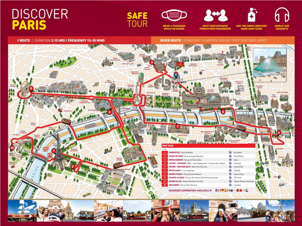 Last Bus: 5:30pm at Stop #1 (Tour Eiffel). Information Centre at 8:45pm.