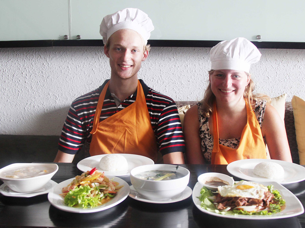 Our cooking class wants to offer you the possibility to discover this in a clean and comfortable setting, taught in a fun way. The classes take place in groups of up to 12 participants. Students are taught to cook complete dishes from scratch, starter, main dish and dessert. Each student receives all ingredients to cook his/her own dish. All preparation work and cooking are hands-on experiences, performed entirely by our students.