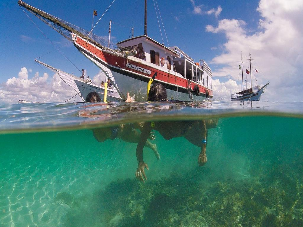 An area of 17,5km with lots of biodiversity like the park of Abrolhos where you can see a lot of species of corals, fish and turtles. If you wish, dive in the natural pools where several fish transform the place into real aquariums’.