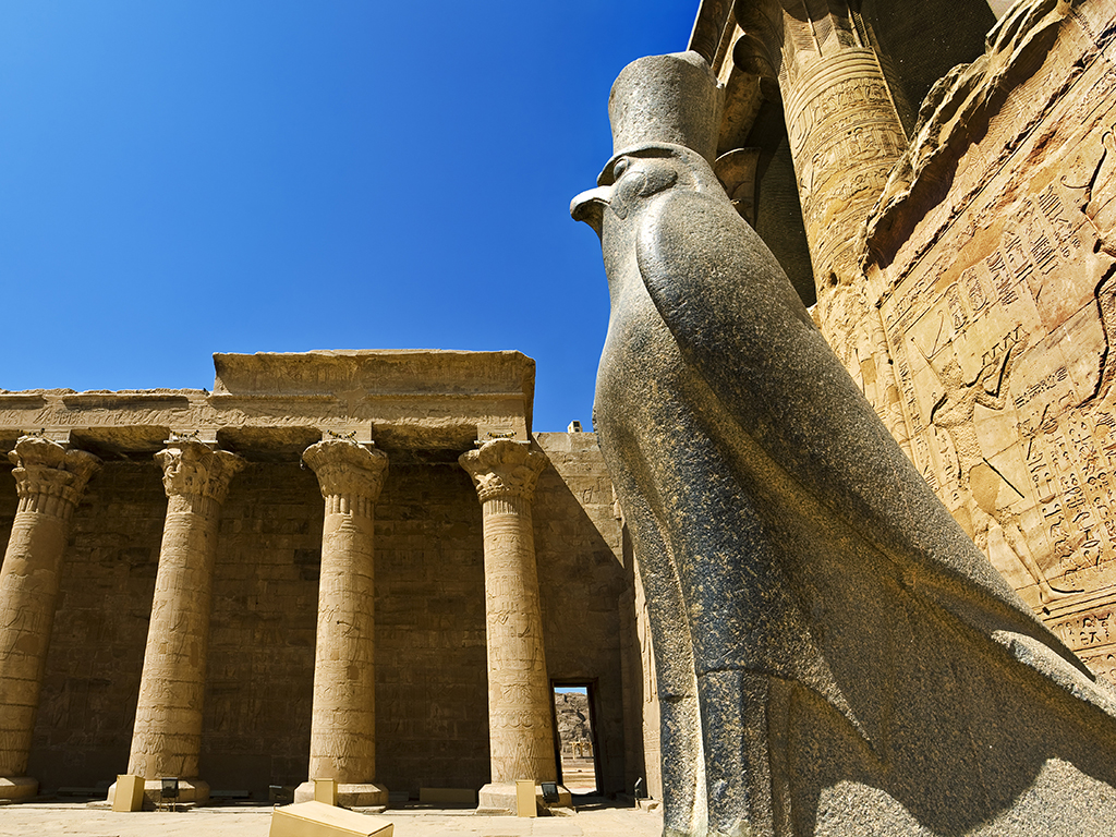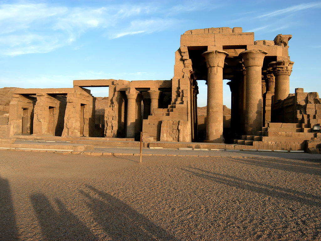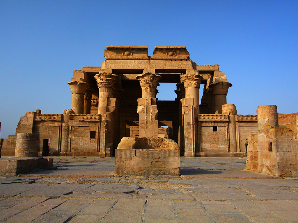 The temple at Kom Ombo is about 48 km north of Aswan and was built during the Graeco-Roman period. The temple is unique because it is a double temple dedicated to Sobek the crocodile god and Horus the falcon-headed god. The layout combines the two temples, each side having its own gateways and chapels. The Edfu Temple was built between 237 and 57 bc. in the reign of Cleopatra VII. From all the temples in Egypt, the Temple of Horus at Edfu is the most completely preserved.