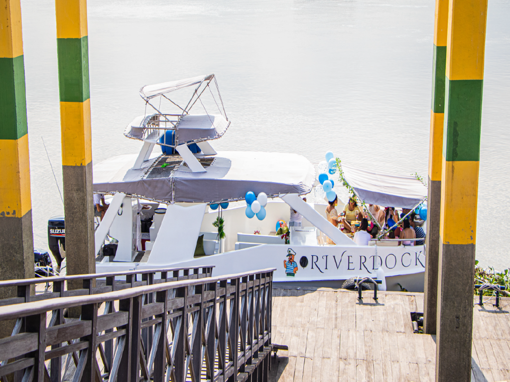 The tour begins with passenger boarding at the Historical Park of Samborondón, surrounded by nature and culture.