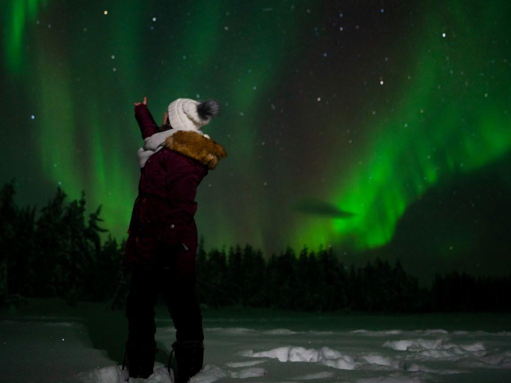 Join us for the Northern lights hunting by minivan. Immerse yourself in the mesmerizing world of the Northern Lights on our unforgettable Lapland adventure. As night falls, we'll pick you up from set locations in Levi and embark on a thrilling journey to witness this spectacular natural phenomenon.