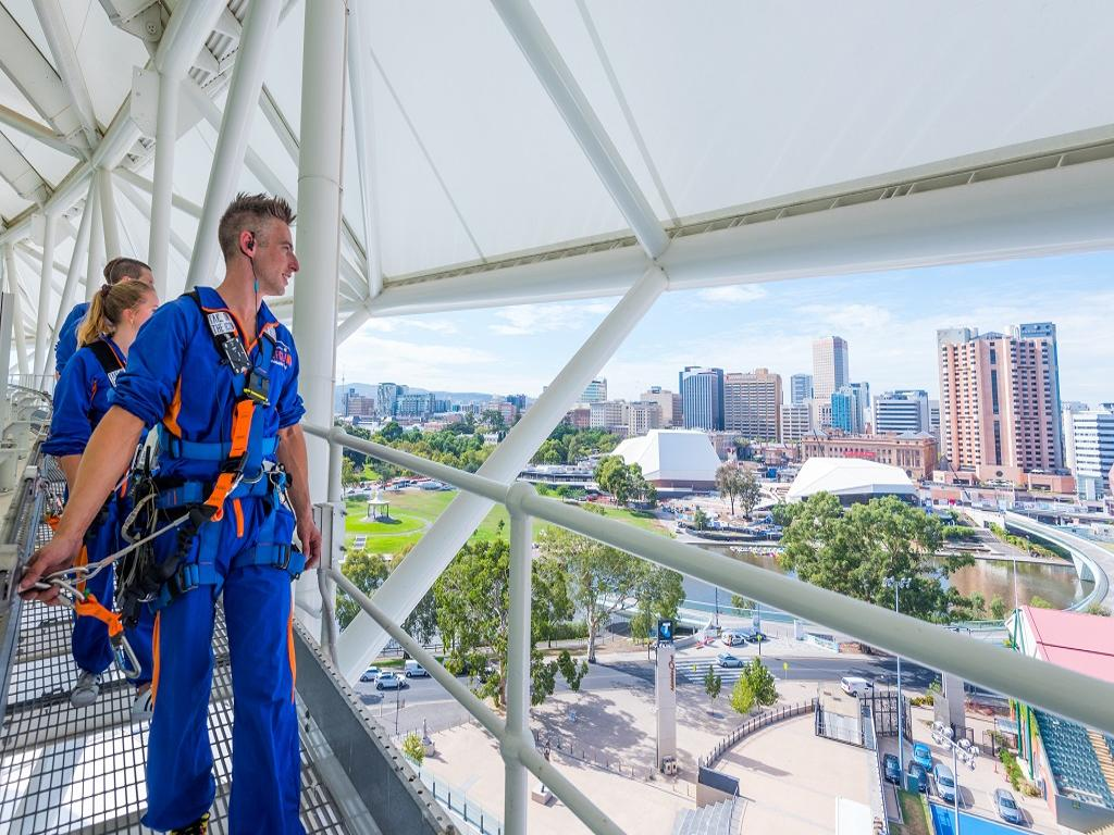 Check in for the sky high Adventure at the RoofClimb Centre located through South Gate entrance at Adelaide Oval, off War Memorial Drive. Once checked-in, a dedicated RoofClimb leader will take you through a 30 minute safety briefing and fit safety equipment including RoofClimb suit, audio equipment to hear commentary and harnesses. Any personal belongings can be stored in personal lockers for the duration of the experience, Cameras, GoPros and other items cannot be taken up for safety reasons. Sunglasses and prescription glasses can be taken on the experience, a tether will be provided to attach them.