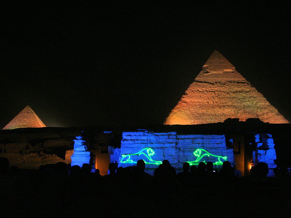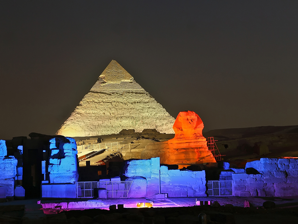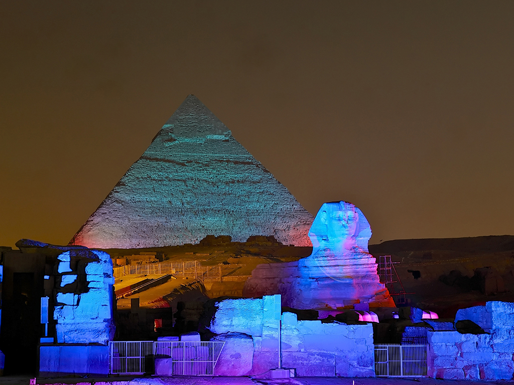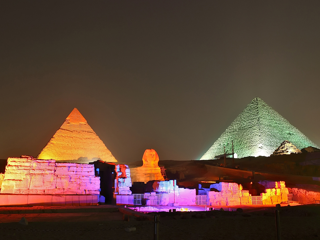 Be prepared for a truly magical experience, the one-hour show begins with the illumination of the Sphinx, who narrates the history of the pyramids and their builders. The Giza Pyramid complex is made up of the Great Pyramid, the Pyramid of Khafre, the Pyramid of Menkaure and the Great Sphinx, witness them sparkle as they are bathed in an enchanting illumination display against the night sky and immerse yourself in the captivating storytelling of their ancient history.