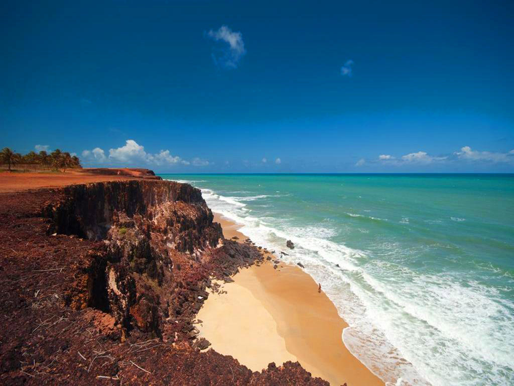 Tambaba is an area of pure natural – and naturalist – beauty with a beach is protected by steep cliffs, some covered by dense forest, some bare, revealing the red or white earth below.