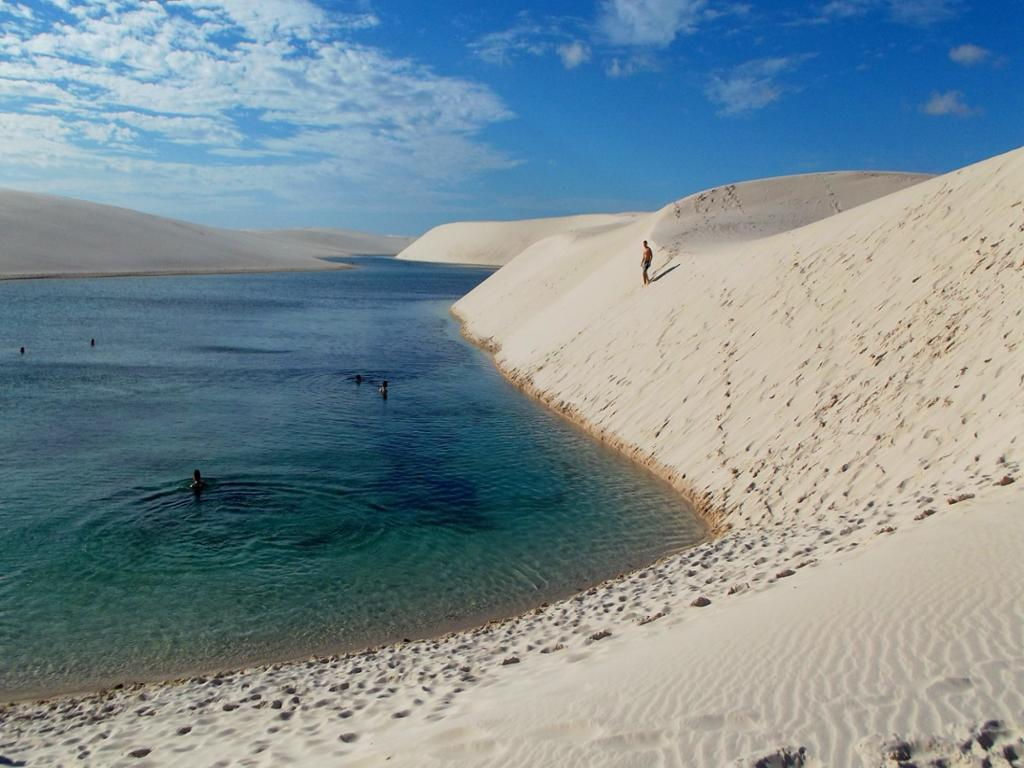 What place is this? Atins ... a small village in the huge park of Lençóis Maranhenses so calm that we hear the noise of silence, the streets are made of very soft sand, a place to call yours and ... almost no internet signal, very "roots" and with an energy that impresses! Departure from Barreirinhas at 8.00 am in a 4X4 vehicle until Atins with a duration of 1h30, following trails to Canto do Atins, passing by the beach and then starting a short walk to visit the lagoons formed by the rain.