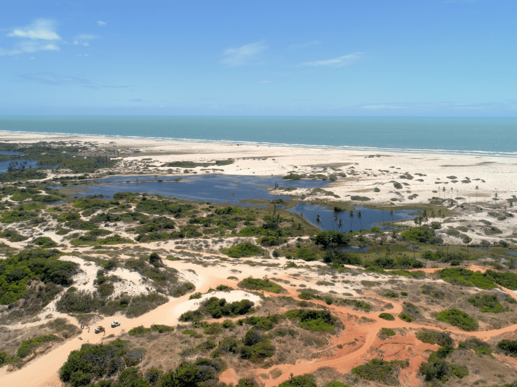 Our base is at Águas Belas Beach, with all the necessary infrastructure: tables with parasols, toilets and a restaurant with delicious seafood and local gastronomy options. Next, we will embark on a buggy ride (ticket already included in the price of the tour) and go on an adventure that lasts about 90 minutes.