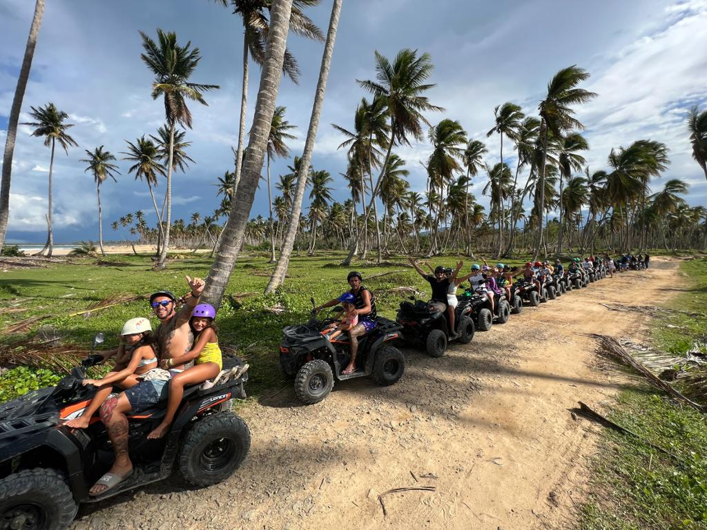 Much more than a 4-wheel excursion! Tropical Quad Tours, a new activity created to please all those who seek adventure, contact with nature, pristine beaches, and of course, a little adrenaline, all in one day. During the day, we'll explore impressive places like the Costa Esmeralda, a true natural gem. We'll climb to the top of Montaña Redonda, and ride along miles and miles of pristine beaches on our quads, brand-new vehicles ideal for the whole family. Best of all, just minutes from Bávaro, Punta Cana.