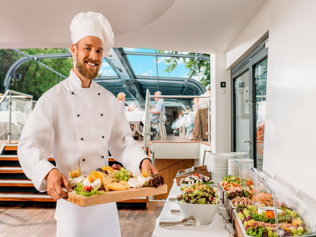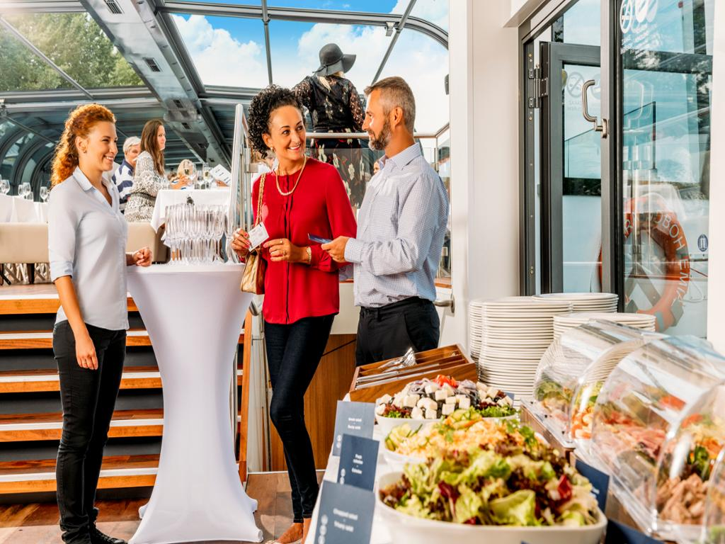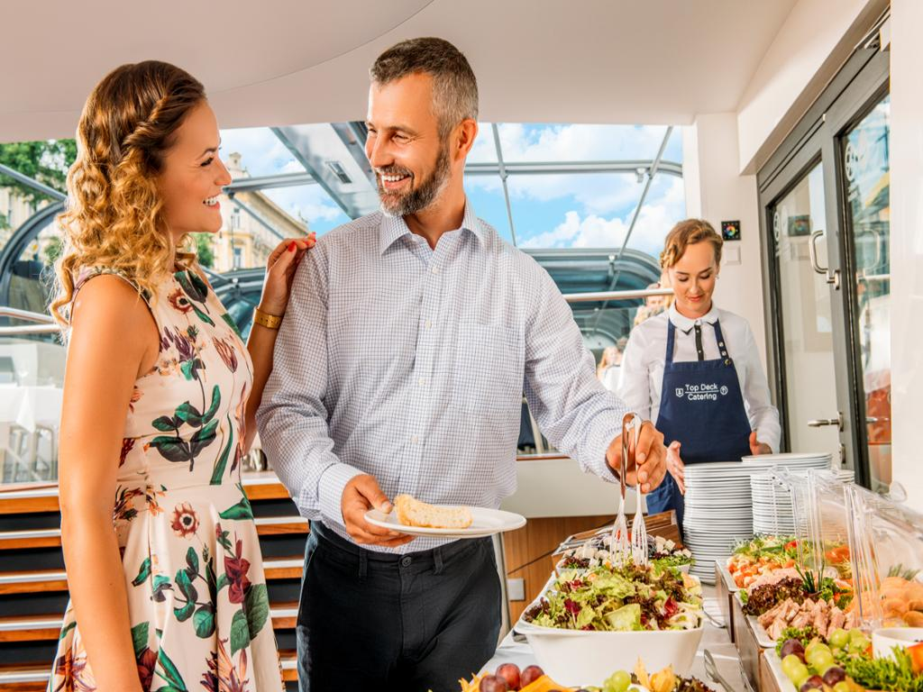 Enjoy a delicious buffet lunch and discover the magic of Prague from the deck of our boat accompanied by live music. In addition to a welcome drink, you can look forward to unforgettable views of the Charles Bridge, Prague Castle, the Dancing House and Vyšehrade will welcome you on board with a typical Czech aperitif and you can sample traditional Czech dishes and international cuisine during the 2-hour cruise.
