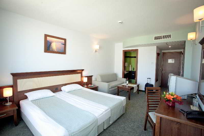 Located in the resort town of Sunny Beach on Bulgaria's Black Sea coastline, this stylish hotel provides the perfect setting for a relaxing seaside getaway. The sandy beach is only 200 metres from the hotel and is perfect for families with children as the sea is calm and the fine sand slopes gently into the water. The resort town also boasts great nightlife, making it ideal for those who wish to spend a lively summer holiday of sea and sun during the day and dancing at night. Rooms are classic and well-appointed with air-conditioning, satellite television, en suite bathroom, and balcony. The hotel restaurant provides buffet and a la carte options for breakfast and dinner with both European and traditional Bulgarian dishes, while the pool bar serves snacks and light lunches during the day. Guests can also play a game of billiards or relax in the lobby bar on a fun-filled family holiday in Sunny Beach.