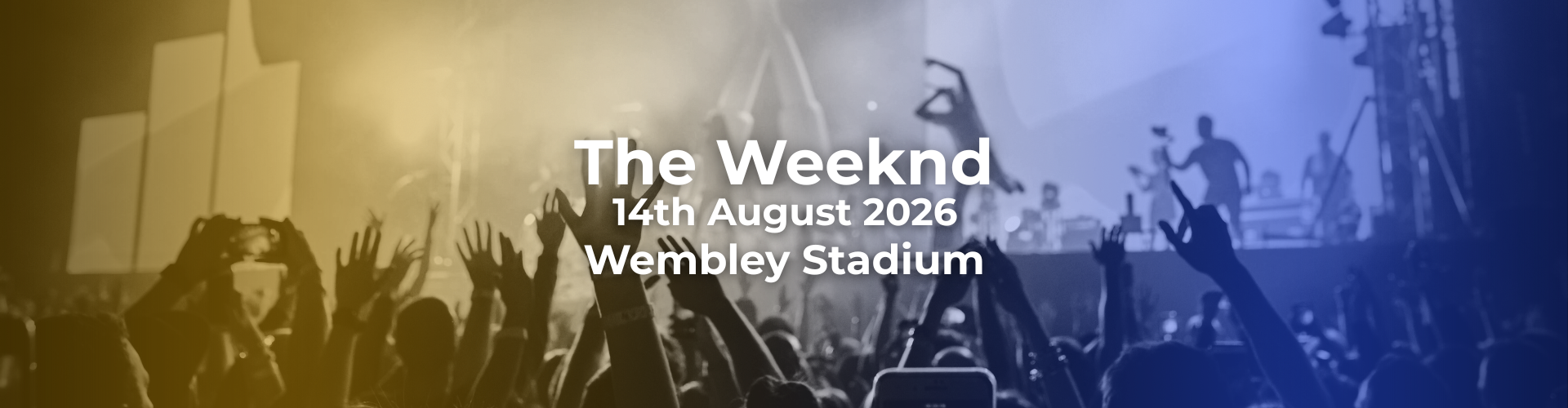 Cassidy Travel Events is delighted to provide event packages to The Weeknd's Wembley Stadium concerts in August 2026! Our convenient packages provide 1-Nights Accommodation & Club Wembley Seated Section tickets for your selected date - with optional flight & additional nights' accommodation available! Be there with Cassidy Travel Events!