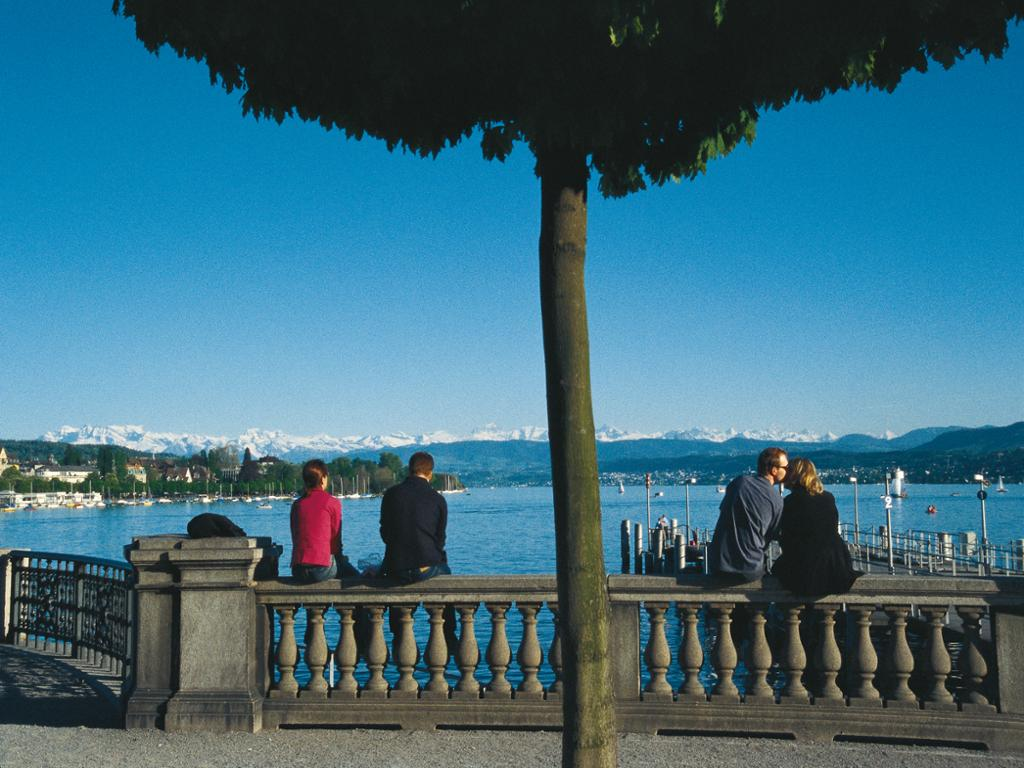Enjoy the fresh lake air and the gorgeous views of the city in one direction and the snow-covered Glarner mountains in the other.